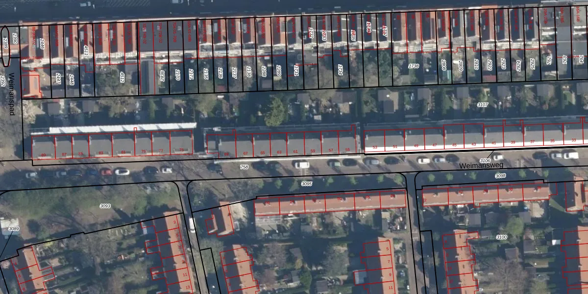 Weimansweg 61 is gelegen op kadastraal perceel CLS00F3107. Deze kadastrale aanduiding is uniek en wordt gebruikt door het Kadaster om eigendomsrechten en andere zakelijke rechten vast te leggen. Het perceel maakt onderdeel uit van de kadastrale gemeente Charlois.