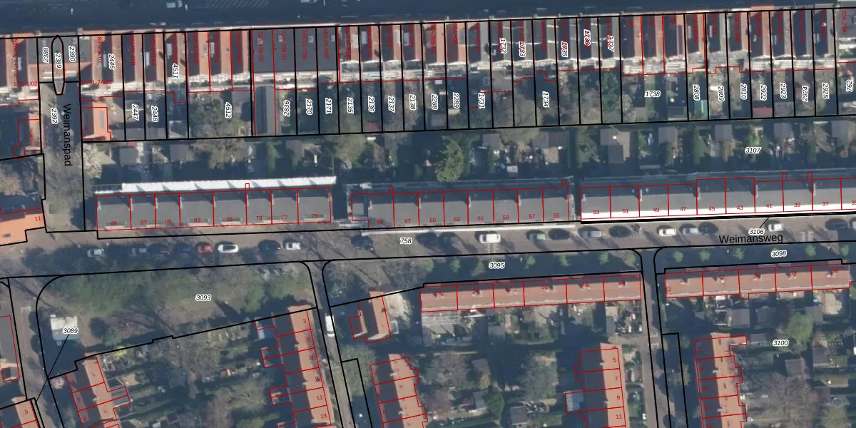 Weimansweg 65 is gelegen op kadastraal perceel CLS00F3107. Deze kadastrale aanduiding is uniek en wordt gebruikt door het Kadaster om eigendomsrechten en andere zakelijke rechten vast te leggen. Het perceel maakt onderdeel uit van de kadastrale gemeente Charlois.