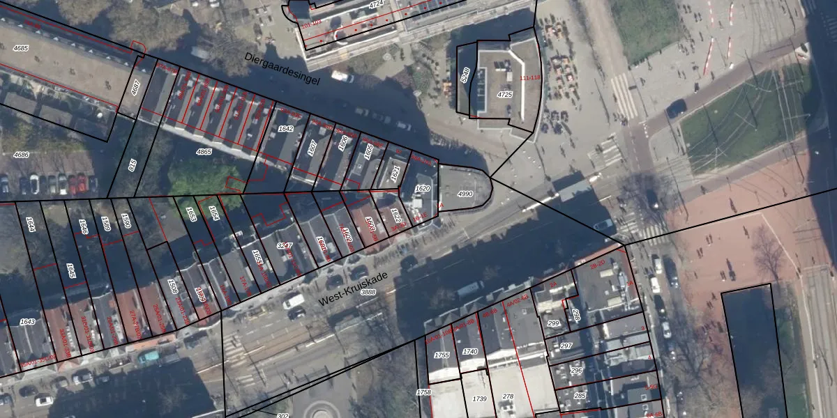 West-Kruiskade 1-C is gelegen op kadastraal perceel RTD06S1620. Deze kadastrale aanduiding is uniek en wordt gebruikt door het Kadaster om eigendomsrechten en andere zakelijke rechten vast te leggen. Het perceel maakt onderdeel uit van de kadastrale gemeente Rotterdam.