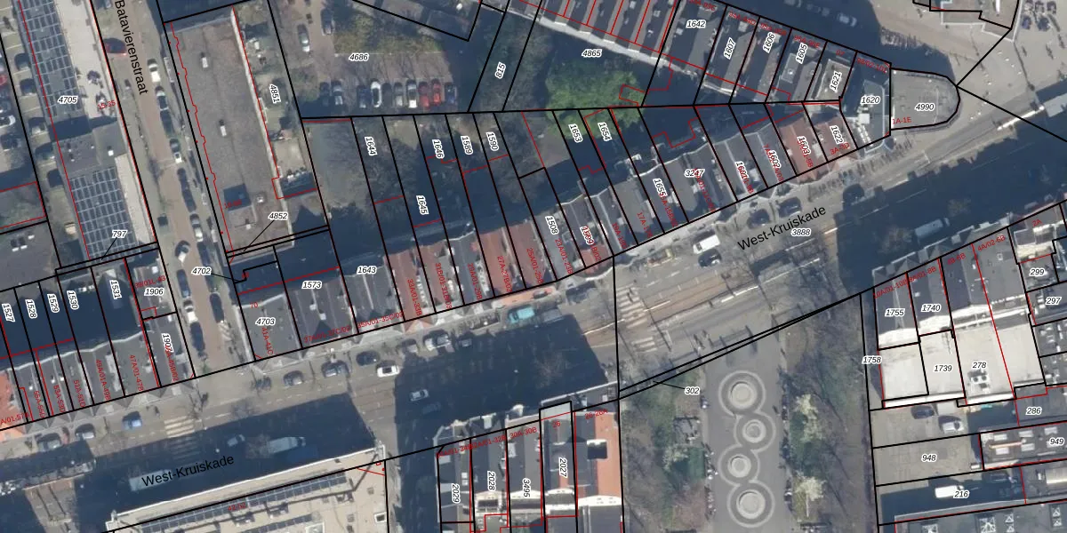 West-Kruiskade 25-A-02 is gelegen op kadastraal perceel RTD06S1590. Deze kadastrale aanduiding is uniek en wordt gebruikt door het Kadaster om eigendomsrechten en andere zakelijke rechten vast te leggen. Het perceel maakt onderdeel uit van de kadastrale gemeente Rotterdam.