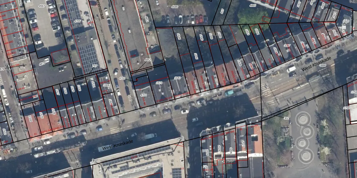 West-Kruiskade 35-C-02 is gelegen op kadastraal perceel RTD06S1643. Deze kadastrale aanduiding is uniek en wordt gebruikt door het Kadaster om eigendomsrechten en andere zakelijke rechten vast te leggen. Het perceel maakt onderdeel uit van de kadastrale gemeente Rotterdam.