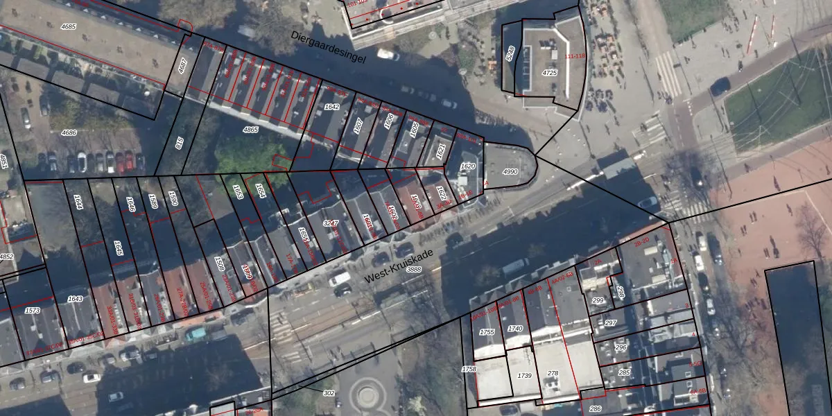 West-Kruiskade 5-A-02 is gelegen op kadastraal perceel RTD06S1603. Deze kadastrale aanduiding is uniek en wordt gebruikt door het Kadaster om eigendomsrechten en andere zakelijke rechten vast te leggen. Het perceel maakt onderdeel uit van de kadastrale gemeente Rotterdam.
