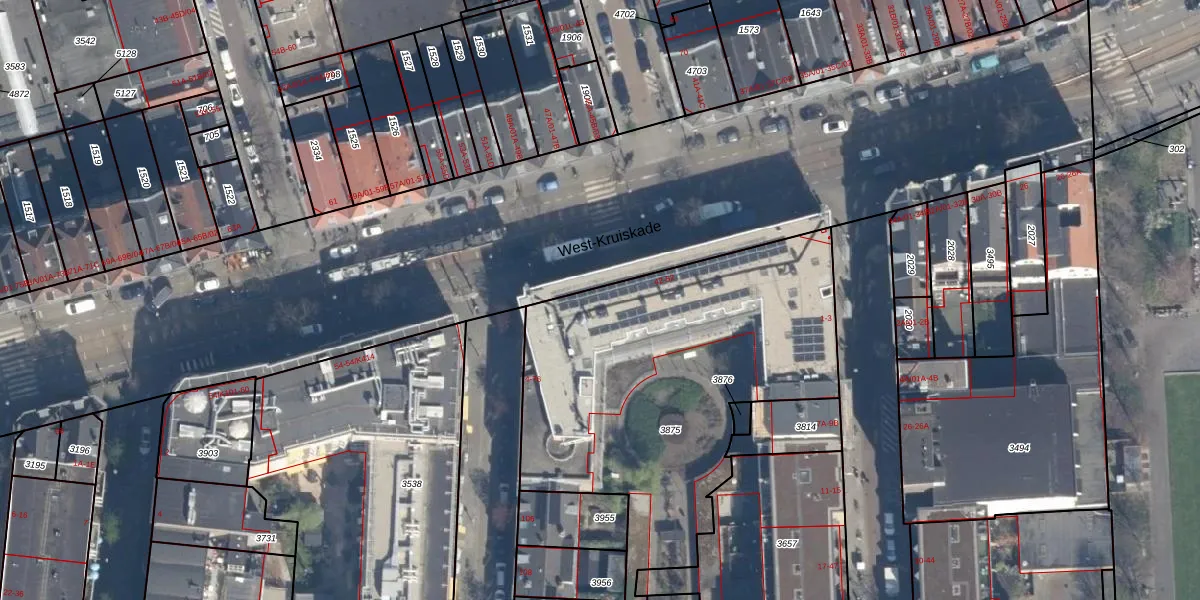 West-Kruiskade 50 is gelegen op kadastraal perceel DHV00D3875. Deze kadastrale aanduiding is uniek en wordt gebruikt door het Kadaster om eigendomsrechten en andere zakelijke rechten vast te leggen. Het perceel maakt onderdeel uit van de kadastrale gemeente Delfshaven.