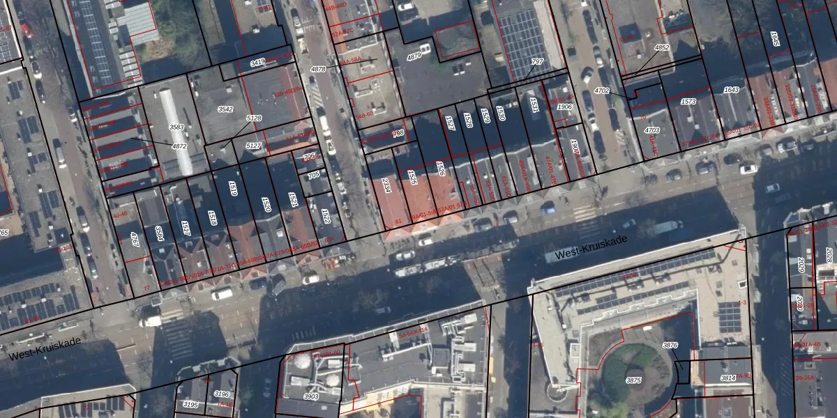 Het perceel waarop West-Kruiskade 59-B staat heeft een oppervlakte van 120 m². Dit is een middelgroot perceel. De perceeloppervlakte wordt geregistreerd door het Kadaster. Gedetailleerde informatie over de maten van dit perceel kunt u vinden in het rapport Kadastrale kaart met maatvoering van West-Kruiskade 59-B.