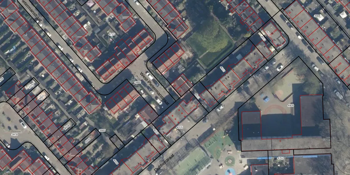 Het perceel waarop West-Pietermanstraat 56 staat heeft een oppervlakte van 6079 m². Dit is een zeer groot perceel. De perceeloppervlakte wordt geregistreerd door het Kadaster. Gedetailleerde informatie over de maten van dit perceel kunt u vinden in het rapport Kadastrale kaart met maatvoering van West-Pietermanstraat 56.