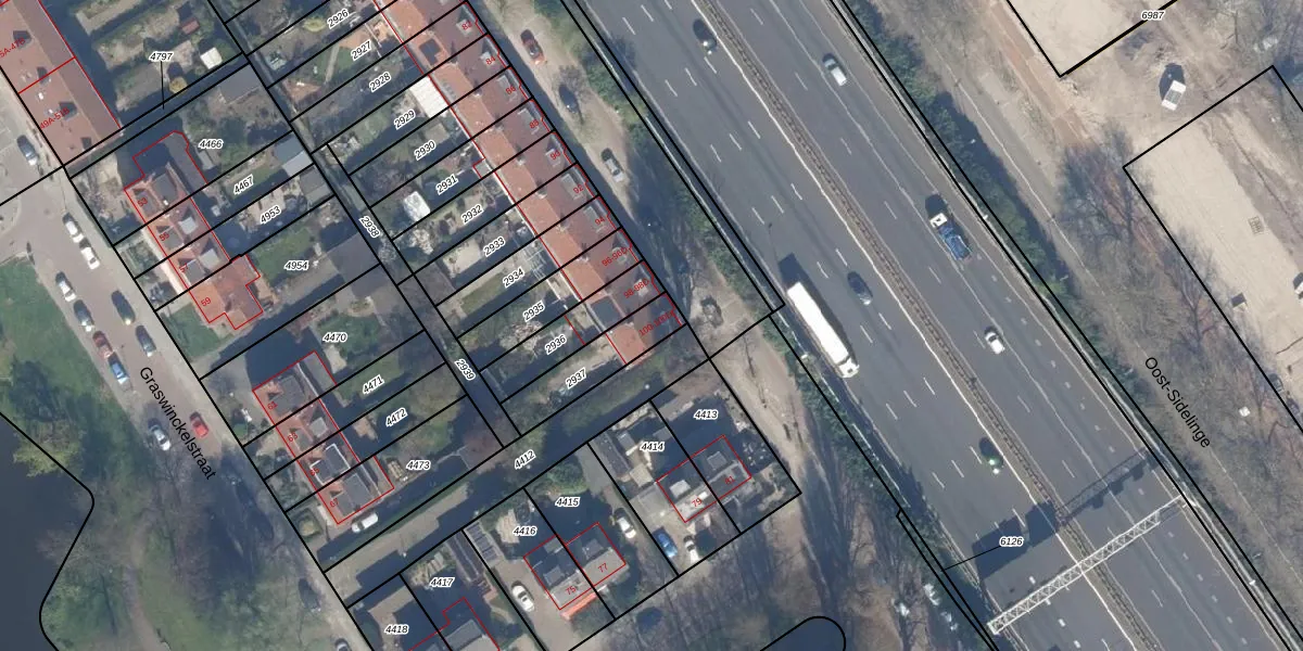 West-Sidelinge 100 is gelegen op kadastraal perceel OVS00C2937. Deze kadastrale aanduiding is uniek en wordt gebruikt door het Kadaster om eigendomsrechten en andere zakelijke rechten vast te leggen. Het perceel maakt onderdeel uit van de kadastrale gemeente Overschie.
