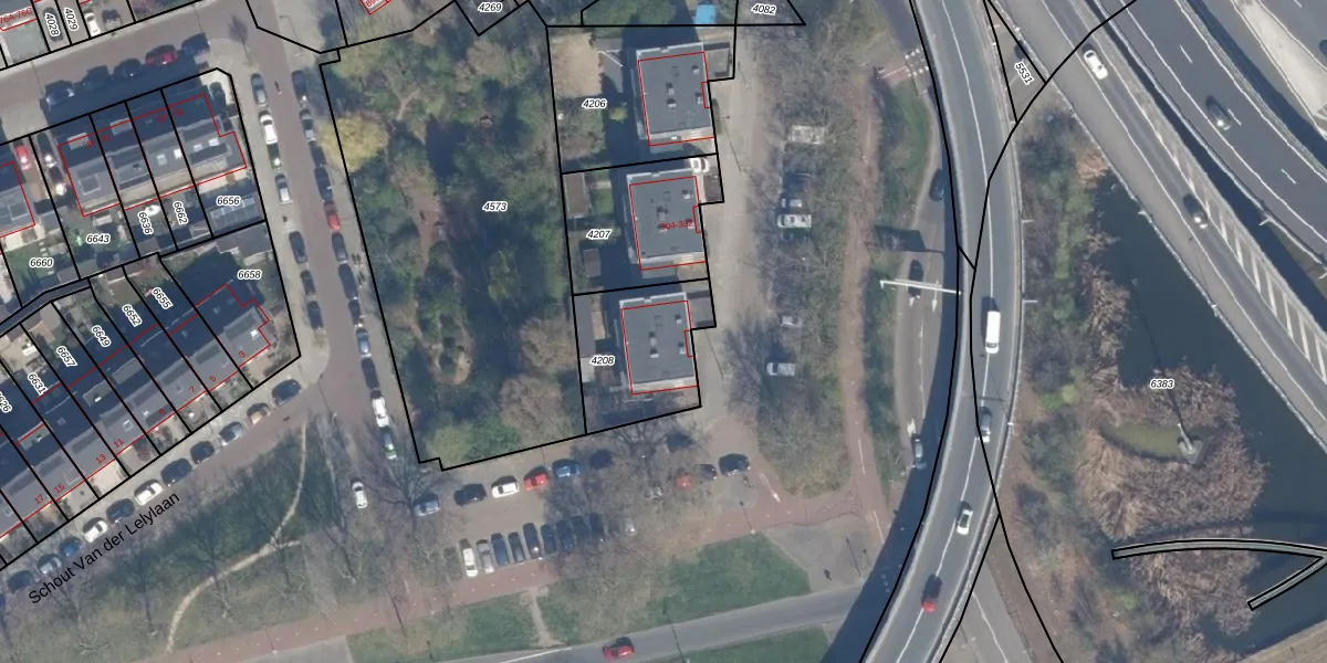 Het adres is gelegen op perceel 4208 in de sectie C en de kadastrale gemeente Overschie. De kadastrale aanduiding is aldus OVS00-C-4208. Het perceel is 369 m² groot. Dat is kleiner dan de gemiddelde perceeloppervlakte in Overschie, dat op 2516,39 m² ligt. Het kleinste perceel in de kadastrale gemeente is 0 m² groot. De grootste perceeloppervlakte is 80,2 ha. Er zijn 5 adressen aanwezig op het perceel. De huidige grenzen van het perceel zijn digitaal in de Basisregistratie Kadaster (BRK) geregistreerd op 15-09-2008.