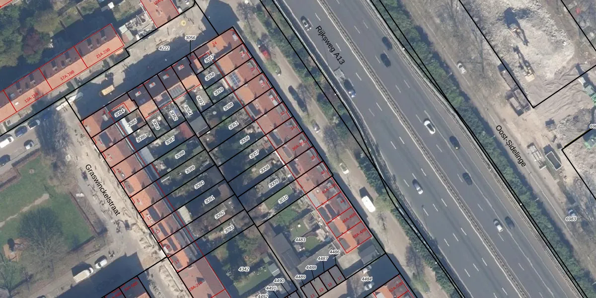 Het adres is gelegen op perceel 3008 in de sectie C en de kadastrale gemeente Overschie. De kadastrale aanduiding is aldus OVS00-C-3008. De gemiddelde perceelgrootte in Overschie is 2520,78 m². Dit perceel is kleiner: de perceeloppervlakte bedraagt 184 m². Het grootste perceel in de kadastrale gemeente is 80,2 ha. Het kleinste perceel heeft een oppervlakte van 0 m². Er zijn 3 adressen aanwezig op het perceel. De huidige grenzen van het perceel zijn digitaal in de Basisregistratie Kadaster (BRK) geregistreerd op 28-05-2008.