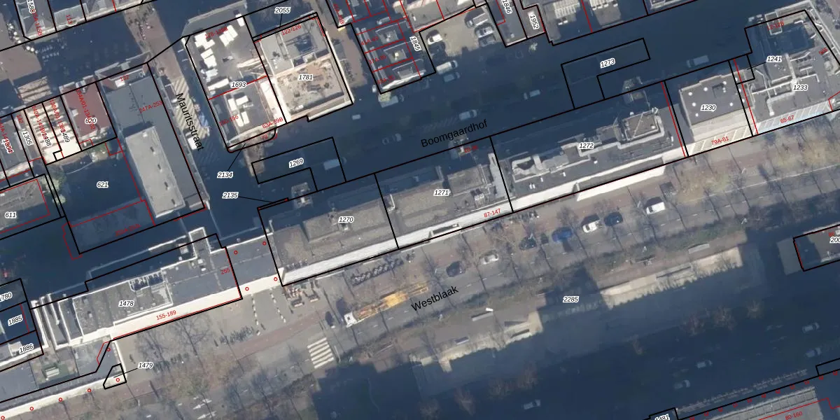 Het perceel waarop Westblaak 117 staat heeft een oppervlakte van 547 m². Dit is een groot perceel. De perceeloppervlakte wordt geregistreerd door het Kadaster. Gedetailleerde informatie over de maten van dit perceel kunt u vinden in het rapport Kadastrale kaart met maatvoering van Westblaak 117.