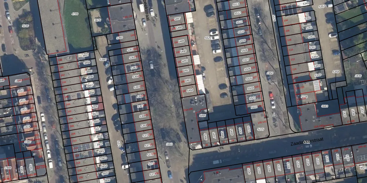 Gebruik de zoekbalk of klik op een perceel voor informatie over de adressen binnen dit perceel.
