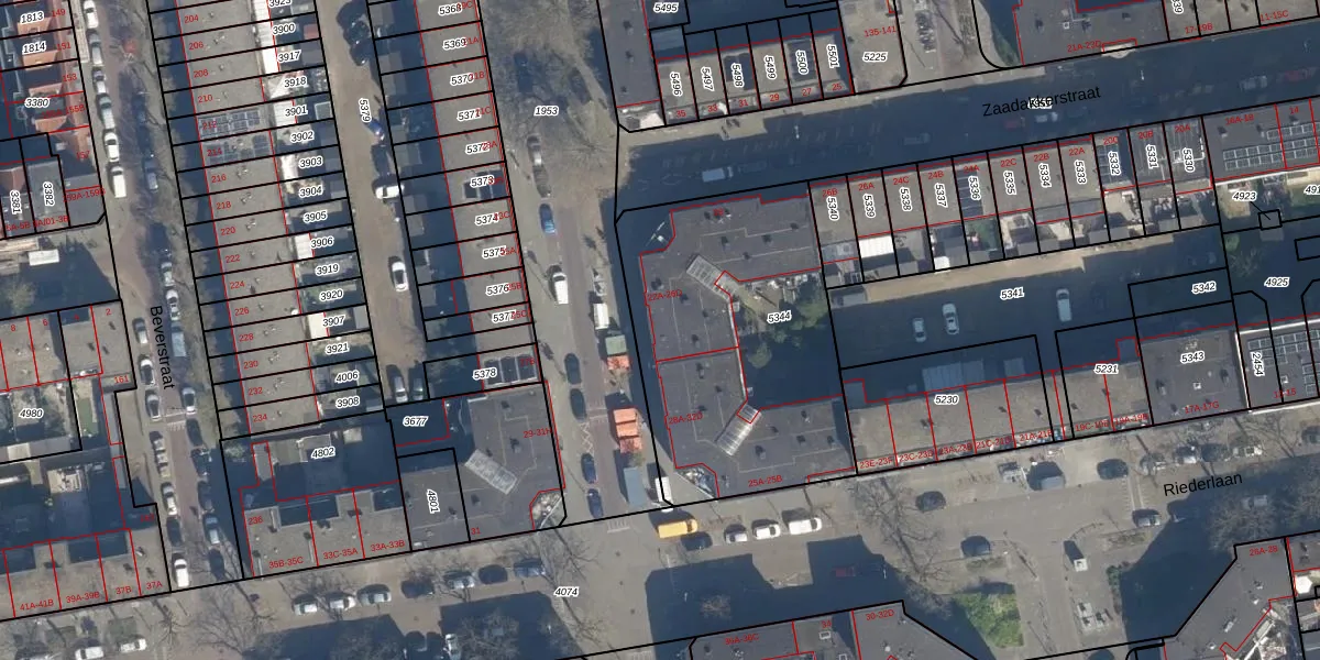 Het adres ligt op het perceel RTD05-V-5344, dat zich in de kadastrale gemeente Rotterdam bevindt. Het perceel is kleiner dan gemiddeld in Rotterdam. Het perceel is 1330 m² groot, terwijl het gemiddelde ligt op 1401,79 m². De grootste perceeloppervlakte in de kadastrale gemeente is 36,8 ha. De kleinste oppervlakte bedraagt 0 m². Op het perceel zijn 26 adressen aanwezig. In de Basisregistratie Kadaster (BRK) werden de grenzen van het perceel geregistreerd op 11-03-2011.