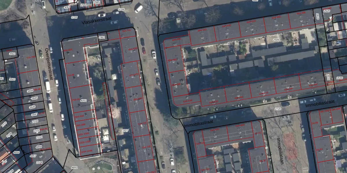 Het adres ligt op het perceel RTD05-V-2599, dat zich in de kadastrale gemeente Rotterdam bevindt. Het perceel is met 4544 m² relatief groot. Het gemiddelde ligt in de kadastrale gemeente Rotterdam op 1402,06 m². Het kleinste perceel in de kadastrale gemeente is 0 m² groot. De grootste perceeloppervlakte is 36,8 ha. Op het perceel liggen in totaal 58 adressen. De laatste wijziging in het de Basisregistratie Kadaster (BRK) was op 19-04-2004.