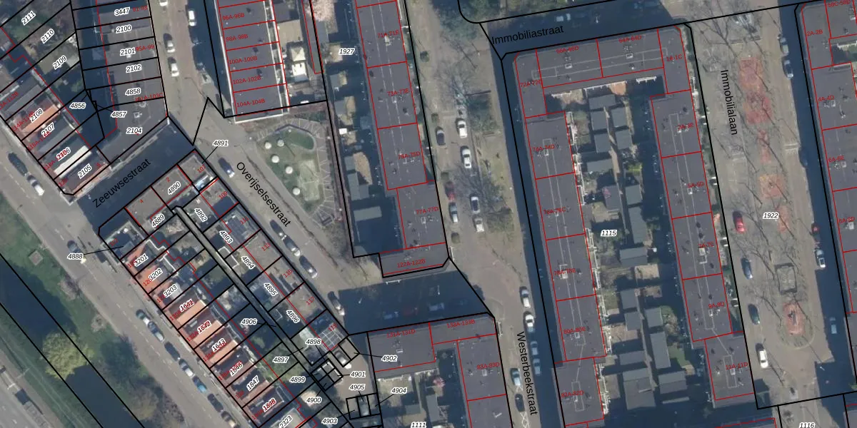 Het adres ligt op het perceel RTD05-V-1927, dat zich in de kadastrale gemeente Rotterdam bevindt. Het perceel is met 2393 m² relatief groot. Het gemiddelde ligt in de kadastrale gemeente Rotterdam op 1402,06 m². Het kleinste perceel in de kadastrale gemeente is 0 m² groot. De grootste perceeloppervlakte is 36,8 ha. Op het perceel liggen in totaal 35 adressen. De huidige grenzen van het perceel zijn digitaal in de Basisregistratie Kadaster (BRK) geregistreerd op 23-04-2007.
