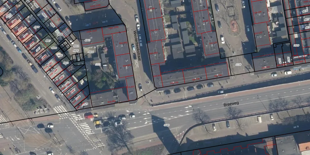 Het adres ligt op het perceel RTD05-V-1115, dat zich in de kadastrale gemeente Rotterdam bevindt. Het perceel is met 4727 m² relatief groot. Het gemiddelde ligt in de kadastrale gemeente Rotterdam op 1402,06 m². De grootste perceeloppervlakte in de kadastrale gemeente is 36,8 ha. De kleinste oppervlakte bedraagt 0 m². Op het perceel zijn 73 adressen aanwezig. De huidige grenzen van het perceel zijn digitaal in de Basisregistratie Kadaster (BRK) geregistreerd op 13-01-2004.