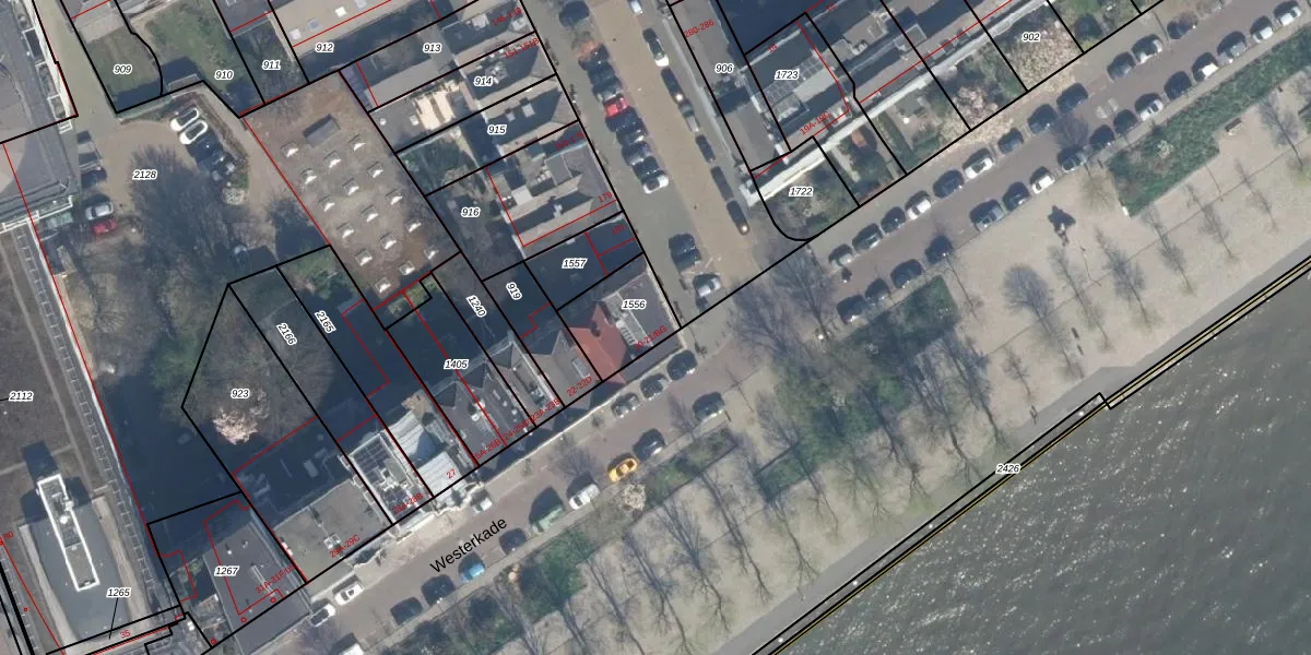 Westerkade 21-BG is gelegen op kadastraal perceel RTD04AG1556. Deze kadastrale aanduiding is uniek en wordt gebruikt door het Kadaster om eigendomsrechten en andere zakelijke rechten vast te leggen. Het perceel maakt onderdeel uit van de kadastrale gemeente Rotterdam.