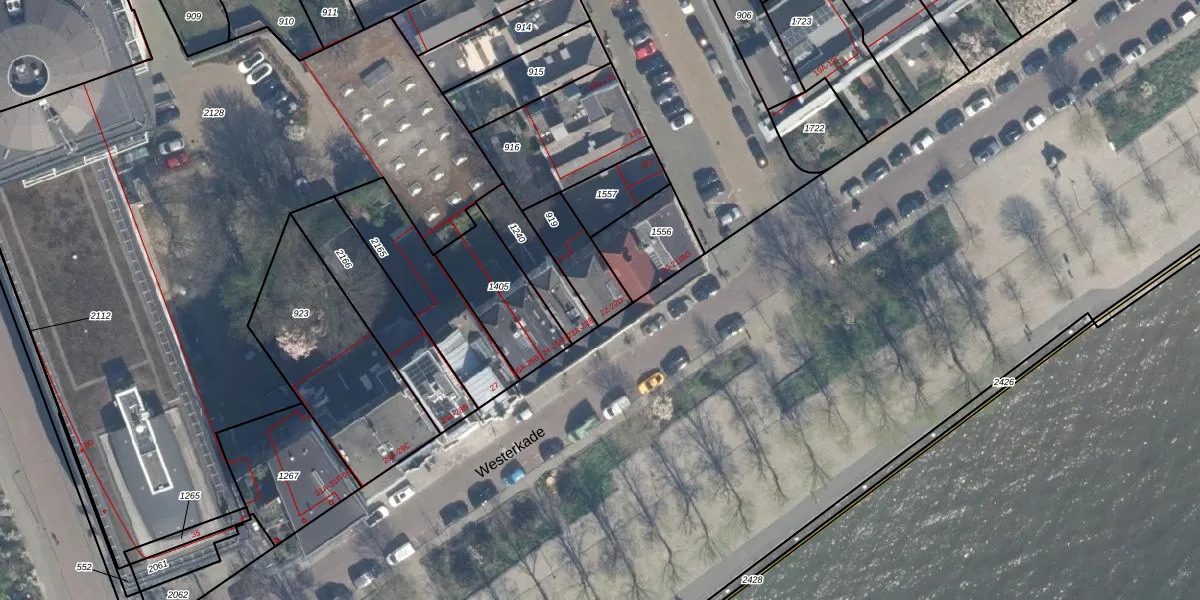 Het perceel waarop Westerkade 22 staat heeft een oppervlakte van 157 m². Dit is een middelgroot perceel. De perceeloppervlakte wordt geregistreerd door het Kadaster. Gedetailleerde informatie over de maten van dit perceel kunt u vinden in het rapport Kadastrale kaart met maatvoering van Westerkade 22.
