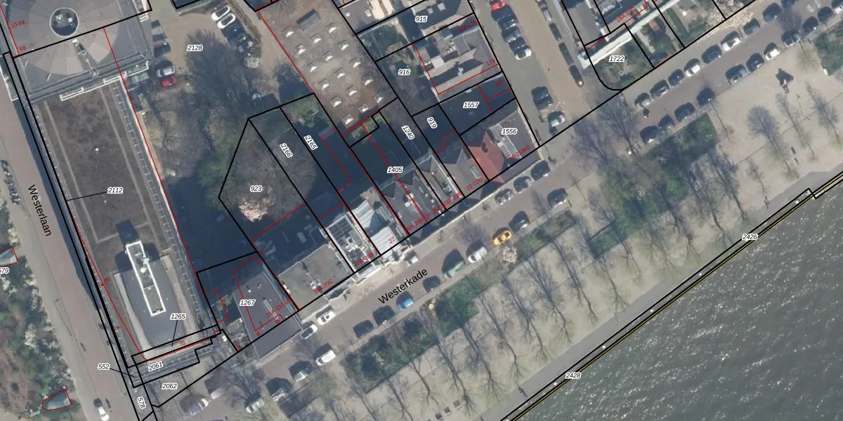 Het perceel waarop Westerkade 25 staat heeft een oppervlakte van 276 m². Dit is een middelgroot perceel. De perceeloppervlakte wordt geregistreerd door het Kadaster. Gedetailleerde informatie over de maten van dit perceel kunt u vinden in het rapport Kadastrale kaart met maatvoering van Westerkade 25.