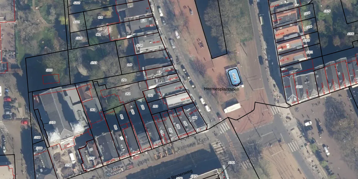 Het adres is gelegen op perceel 252 in de sectie AF en de kadastrale gemeente Rotterdam. De kadastrale aanduiding is aldus RTD04-AF-252. Het perceel is kleiner dan gemiddeld in Rotterdam. Het perceel is 152 m² groot, terwijl het gemiddelde ligt op 1240,47 m². Het grootste perceel in de kadastrale gemeente is 17,3 ha. Het kleinste perceel heeft een oppervlakte van 0 m². Er zijn 5 adressen aanwezig op het perceel. De huidige grenzen van het perceel zijn digitaal in de Basisregistratie Kadaster (BRK) geregistreerd op 22-09-2009.