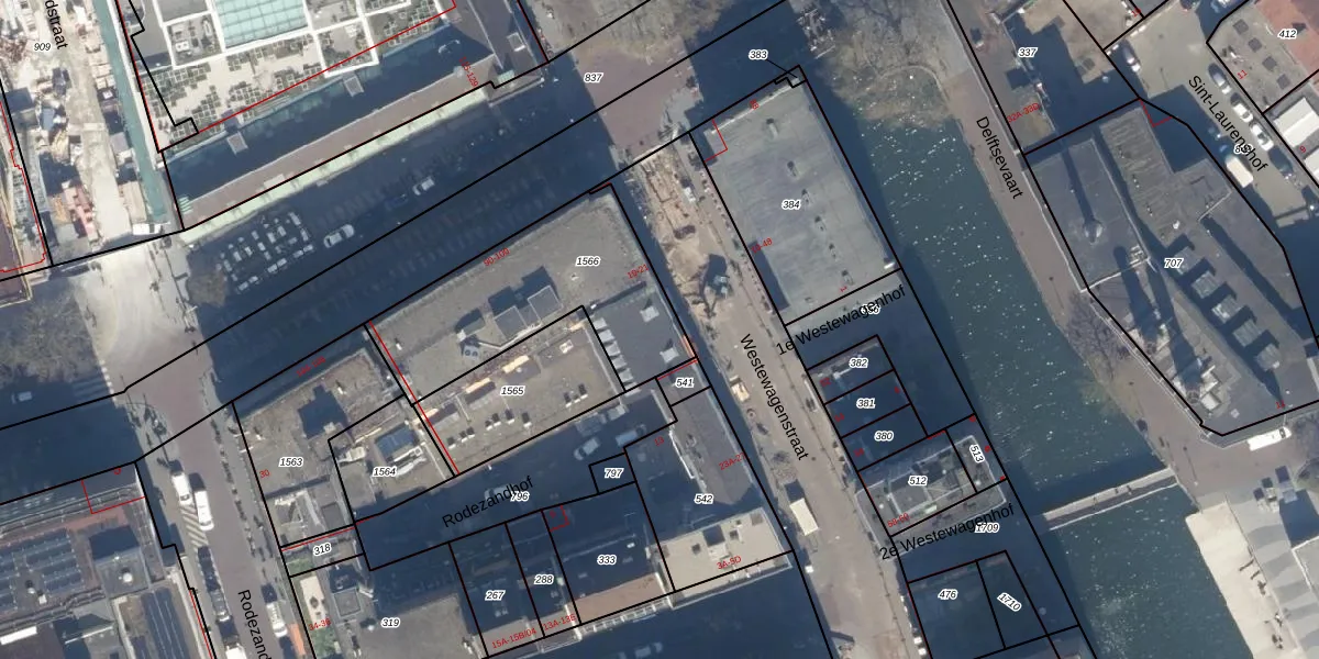 Het adres ligt op het perceel RTD04-AF-1566, dat zich in de kadastrale gemeente Rotterdam bevindt. De gemiddelde perceelgrootte in Rotterdam is 1239,97 m². Dit perceel is kleiner: de perceeloppervlakte bedraagt 791 m². Het kleinste perceel in de kadastrale gemeente is 0 m² groot. De grootste perceeloppervlakte is 17,3 ha. Op het perceel liggen in totaal 8 adressen. De huidige grenzen van het perceel zijn digitaal in de Basisregistratie Kadaster (BRK) geregistreerd op 22-09-2010.