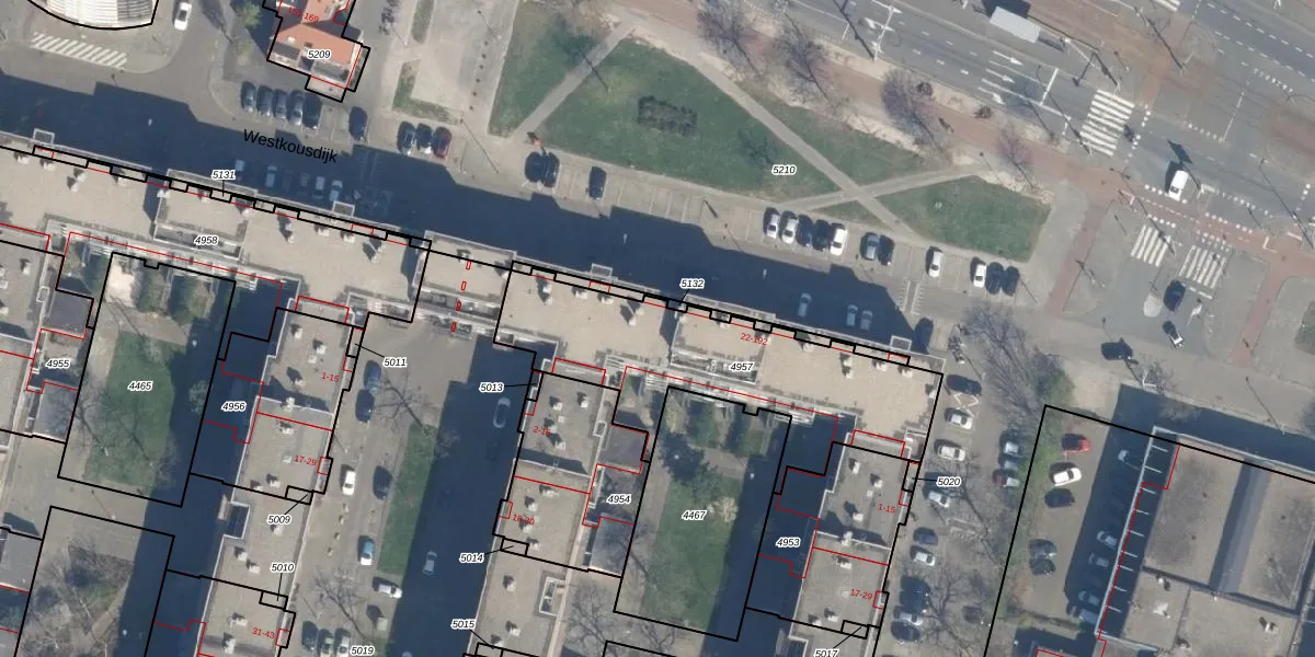 Het perceel waarop Westkousdijk 64 staat heeft een oppervlakte van 995 m². Dit is een groot perceel. De perceeloppervlakte wordt geregistreerd door het Kadaster. Gedetailleerde informatie over de maten van dit perceel kunt u vinden in het rapport Kadastrale kaart met maatvoering van Westkousdijk 64.