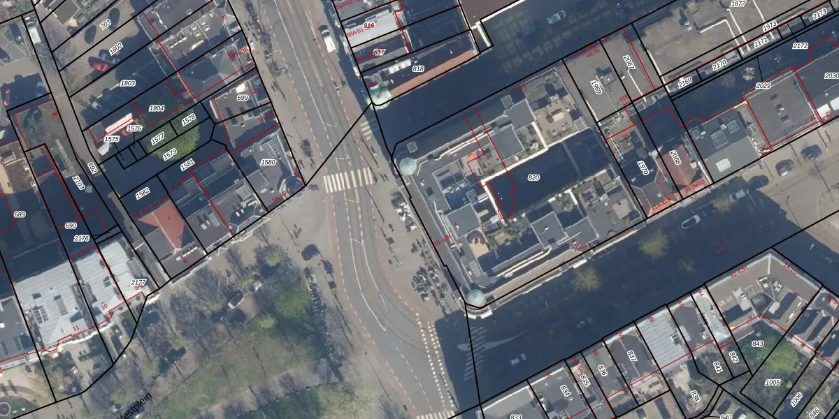 Het perceel waarop Westplein 107 staat heeft een oppervlakte van 2041 m². Dit is een zeer groot perceel. De perceeloppervlakte wordt geregistreerd door het Kadaster. Gedetailleerde informatie over de maten van dit perceel kunt u vinden in het rapport Kadastrale kaart met maatvoering van Westplein 107.