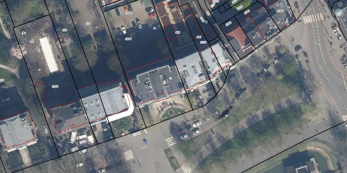 Het perceel waarop Westplein 14 staat heeft een oppervlakte van 2042 m². Dit is een zeer groot perceel. De perceeloppervlakte wordt geregistreerd door het Kadaster. Gedetailleerde informatie over de maten van dit perceel kunt u vinden in het rapport Kadastrale kaart met maatvoering van Westplein 14.