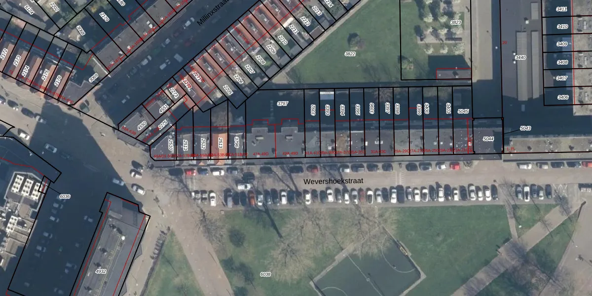 Wevershoekstraat 43-B is gelegen op kadastraal perceel CLS00G3797. Deze kadastrale aanduiding is uniek en wordt gebruikt door het Kadaster om eigendomsrechten en andere zakelijke rechten vast te leggen. Het perceel maakt onderdeel uit van de kadastrale gemeente Charlois.