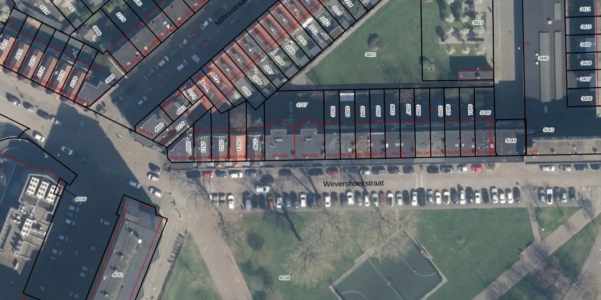 Wevershoekstraat 45-B is gelegen op kadastraal perceel CLS00G3797. Deze kadastrale aanduiding is uniek en wordt gebruikt door het Kadaster om eigendomsrechten en andere zakelijke rechten vast te leggen. Het perceel maakt onderdeel uit van de kadastrale gemeente Charlois.