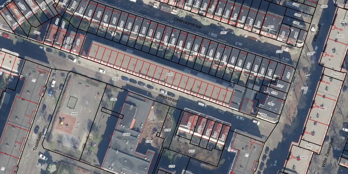 Wiekstraat 27 is gelegen op kadastraal perceel RTD07W6241. Deze kadastrale aanduiding is uniek en wordt gebruikt door het Kadaster om eigendomsrechten en andere zakelijke rechten vast te leggen. Het perceel maakt onderdeel uit van de kadastrale gemeente Rotterdam.