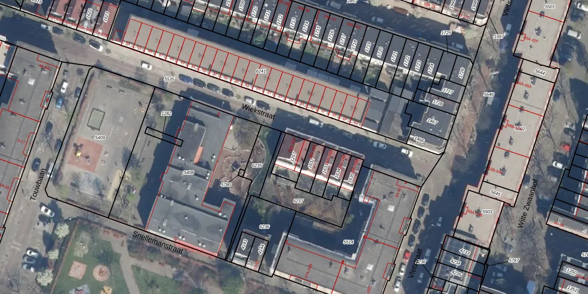 Wiekstraat 30-B-BOR is gelegen op kadastraal perceel RTD07W1257. Deze kadastrale aanduiding is uniek en wordt gebruikt door het Kadaster om eigendomsrechten en andere zakelijke rechten vast te leggen. Het perceel maakt onderdeel uit van de kadastrale gemeente Rotterdam.