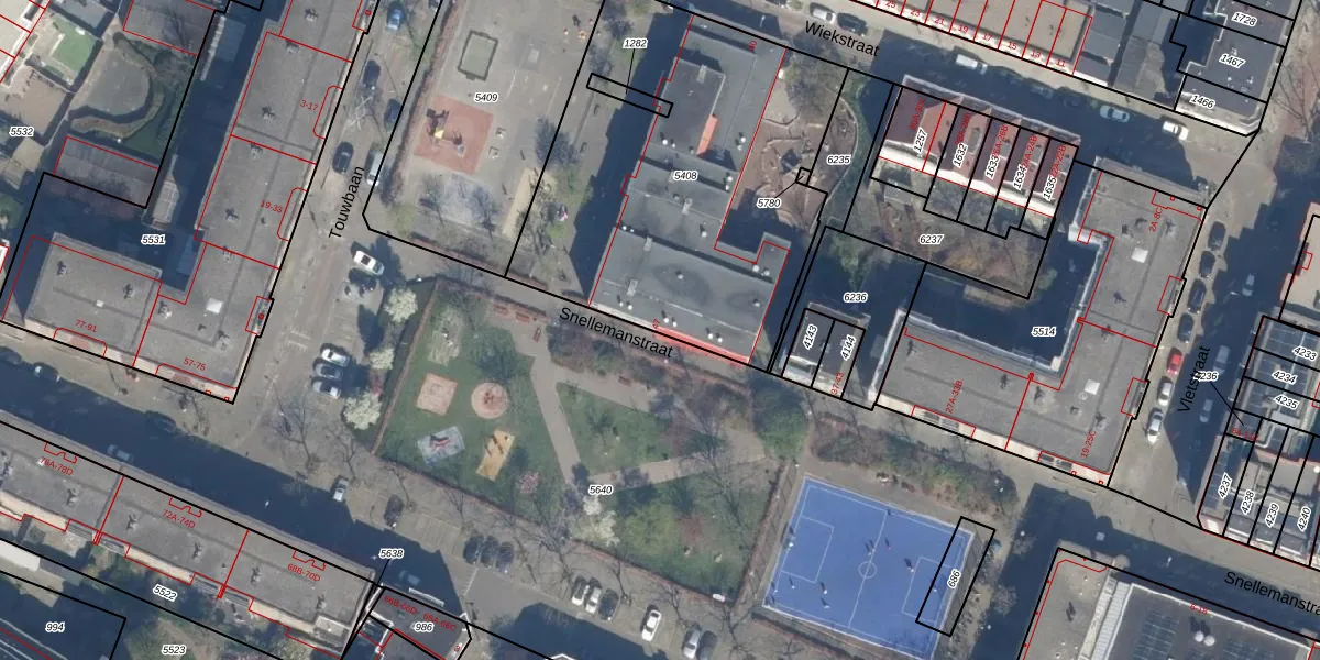 Wiekstraat 40 is gelegen op kadastraal perceel RTD07W5408. Deze kadastrale aanduiding is uniek en wordt gebruikt door het Kadaster om eigendomsrechten en andere zakelijke rechten vast te leggen. Het perceel maakt onderdeel uit van de kadastrale gemeente Rotterdam.