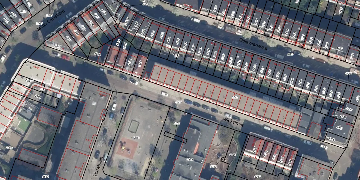Wiekstraat 45 is gelegen op kadastraal perceel RTD07W6241. Deze kadastrale aanduiding is uniek en wordt gebruikt door het Kadaster om eigendomsrechten en andere zakelijke rechten vast te leggen. Het perceel maakt onderdeel uit van de kadastrale gemeente Rotterdam.