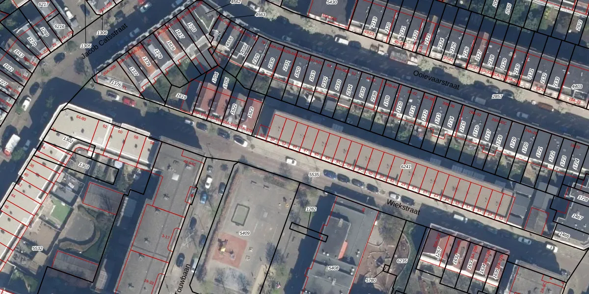 Wiekstraat 49 is gelegen op kadastraal perceel RTD07W6241. Deze kadastrale aanduiding is uniek en wordt gebruikt door het Kadaster om eigendomsrechten en andere zakelijke rechten vast te leggen. Het perceel maakt onderdeel uit van de kadastrale gemeente Rotterdam.