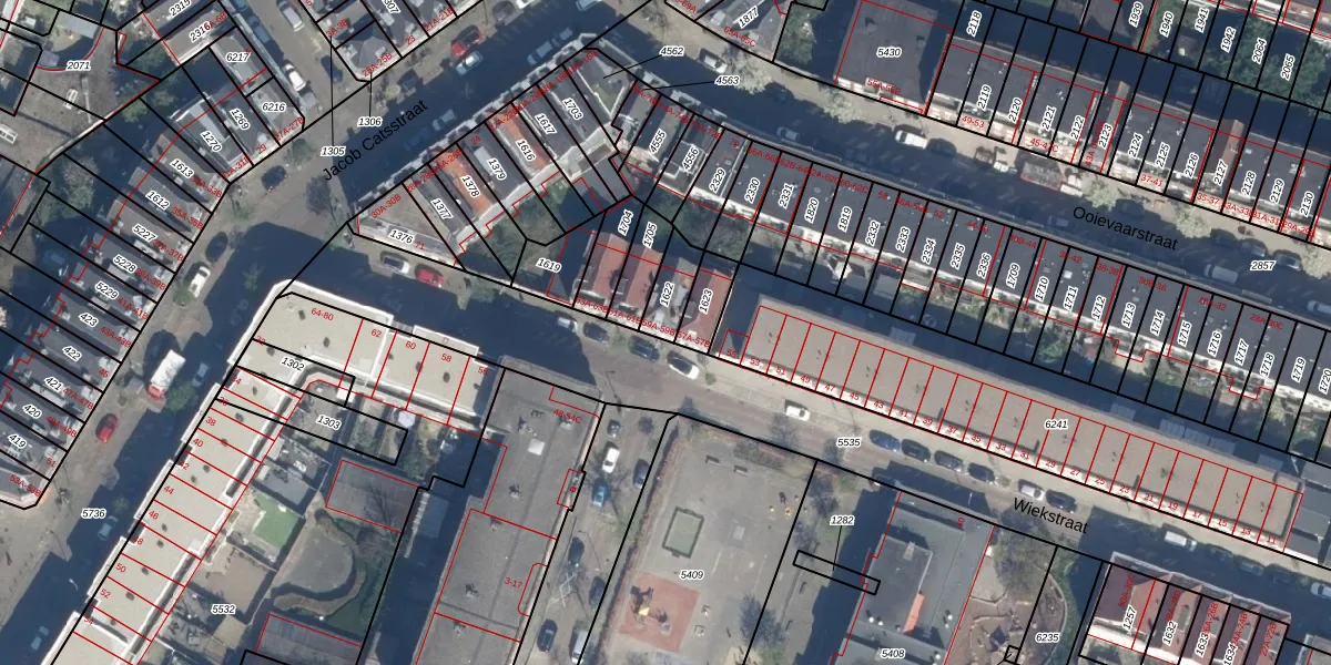 Wiekstraat 59-B is gelegen op kadastraal perceel RTD07W1622. Deze kadastrale aanduiding is uniek en wordt gebruikt door het Kadaster om eigendomsrechten en andere zakelijke rechten vast te leggen. Het perceel maakt onderdeel uit van de kadastrale gemeente Rotterdam.