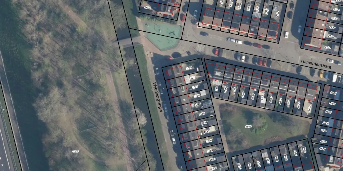 Gebruik de zoekbalk of klik op een perceel voor informatie over de adressen binnen dit perceel.