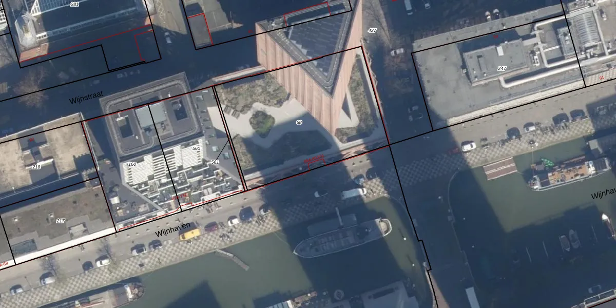 Wijnhaven 65-C-04 is gelegen op kadastraal perceel RTD04AH68. Deze kadastrale aanduiding is uniek en wordt gebruikt door het Kadaster om eigendomsrechten en andere zakelijke rechten vast te leggen. Het perceel maakt onderdeel uit van de kadastrale gemeente Rotterdam.