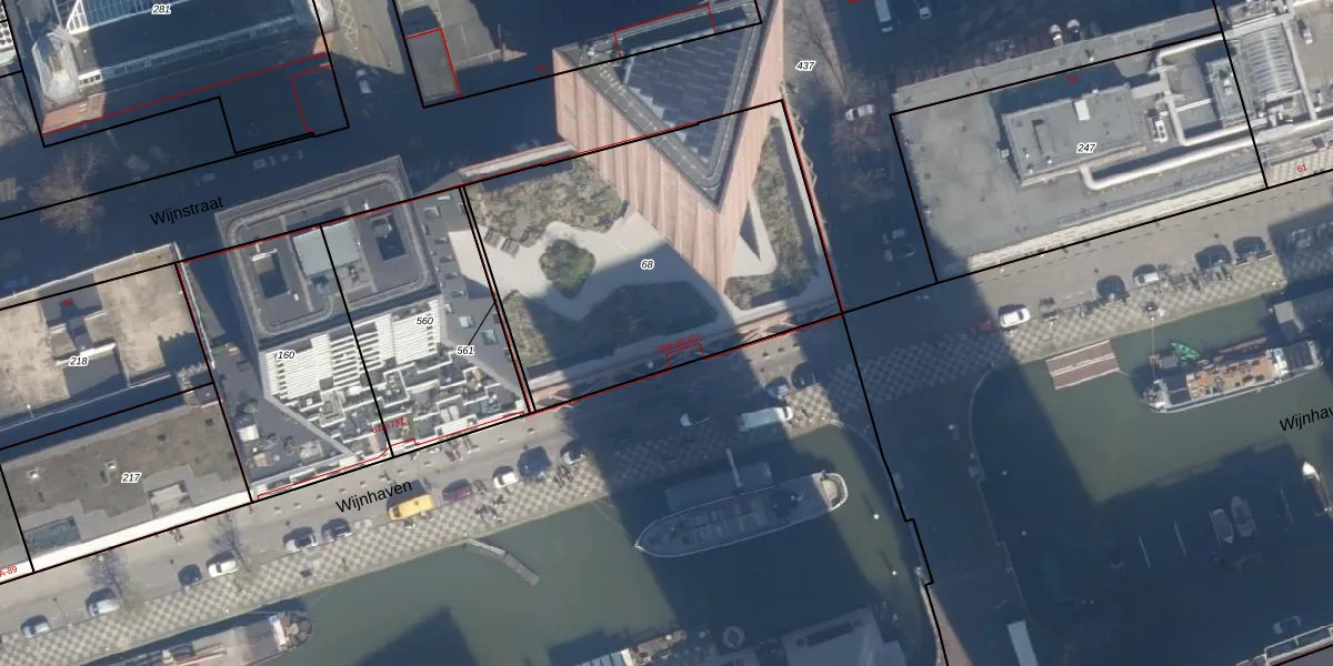 Wijnhaven 65-C-16 is gelegen op kadastraal perceel RTD04AH68. Deze kadastrale aanduiding is uniek en wordt gebruikt door het Kadaster om eigendomsrechten en andere zakelijke rechten vast te leggen. Het perceel maakt onderdeel uit van de kadastrale gemeente Rotterdam.