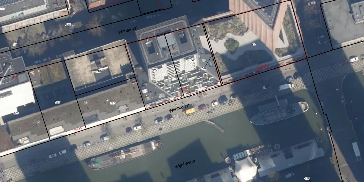 Wijnhaven 67-R is gelegen op kadastraal perceel RTD04AH160. Deze kadastrale aanduiding is uniek en wordt gebruikt door het Kadaster om eigendomsrechten en andere zakelijke rechten vast te leggen. Het perceel maakt onderdeel uit van de kadastrale gemeente Rotterdam.