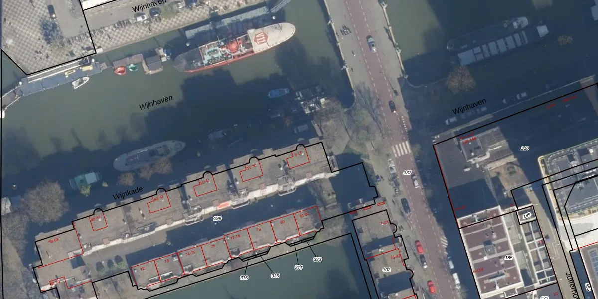Het perceel waarop Wijnkade 14 staat heeft een oppervlakte van 2981 m². Dit is een zeer groot perceel. De perceeloppervlakte wordt geregistreerd door het Kadaster. Gedetailleerde informatie over de maten van dit perceel kunt u vinden in het rapport Kadastrale kaart met maatvoering van Wijnkade 14.