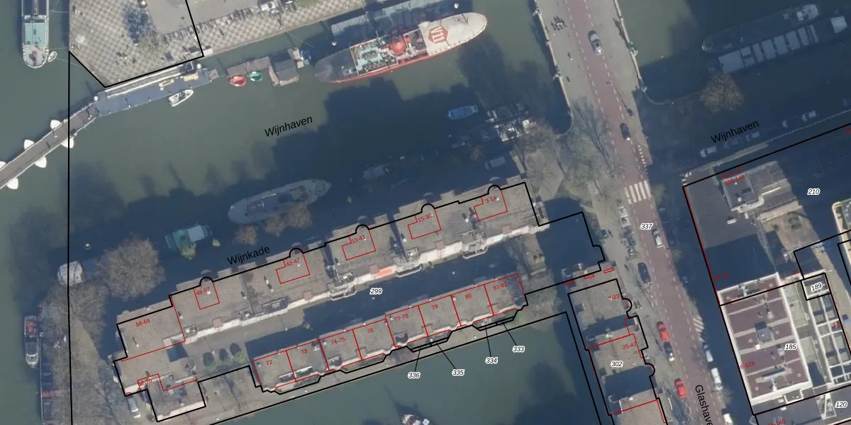 Het perceel waarop Wijnkade 21 staat heeft een oppervlakte van 2981 m². Dit is een zeer groot perceel. De perceeloppervlakte wordt geregistreerd door het Kadaster. Gedetailleerde informatie over de maten van dit perceel kunt u vinden in het rapport Kadastrale kaart met maatvoering van Wijnkade 21.
