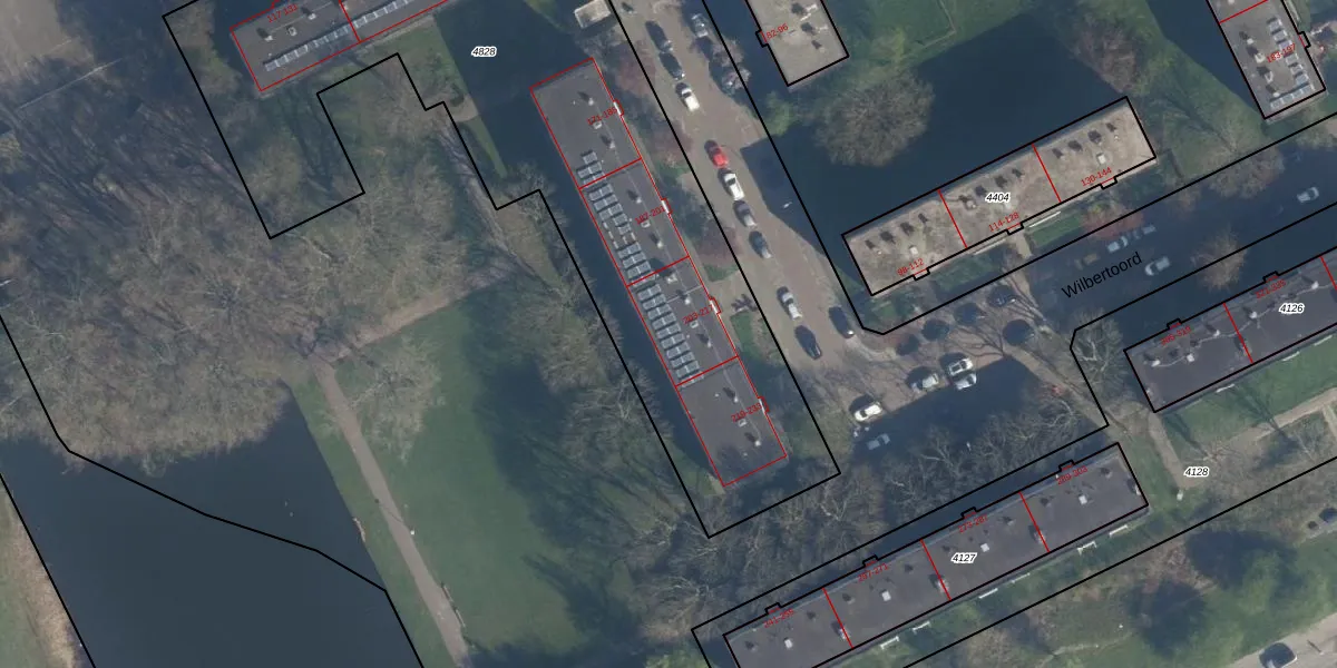 Het perceel waarop Wilbertoord 203 staat heeft een oppervlakte van 3581 m². Dit is een zeer groot perceel. De perceeloppervlakte wordt geregistreerd door het Kadaster. Gedetailleerde informatie over de maten van dit perceel kunt u vinden in het rapport Kadastrale kaart met maatvoering van Wilbertoord 203.