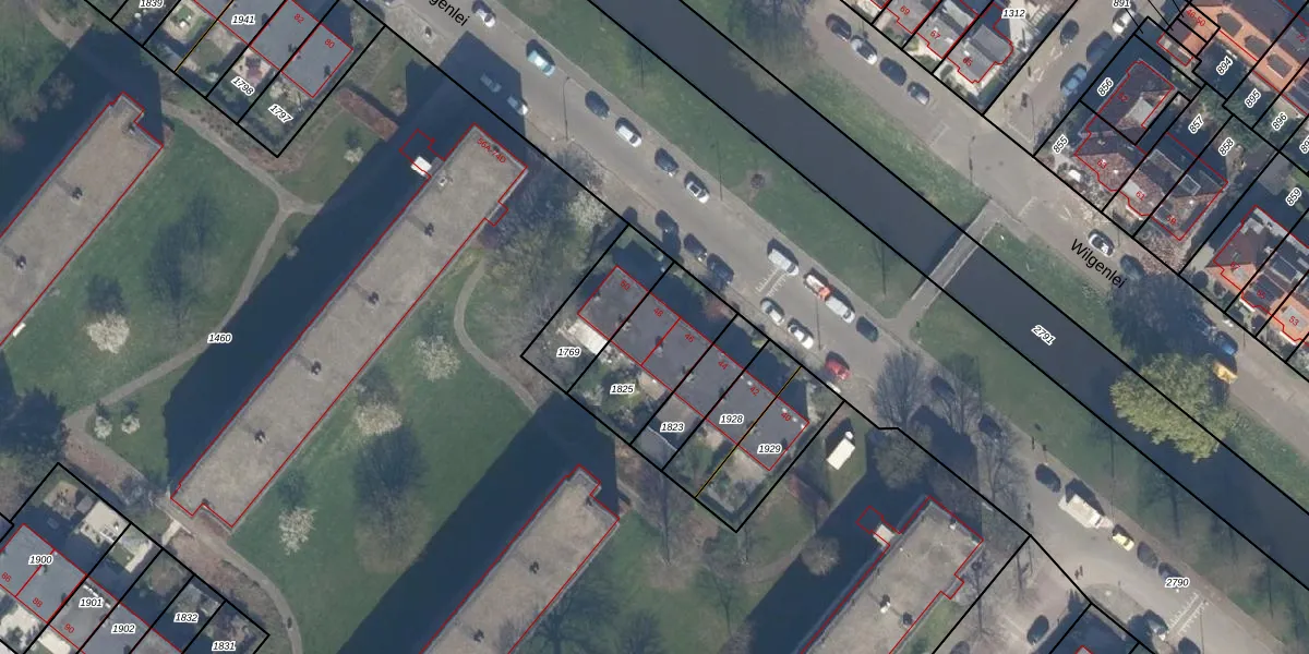 Wilgenlei 48 is gelegen op kadastraal perceel SBK01D1825. Deze kadastrale aanduiding is uniek en wordt gebruikt door het Kadaster om eigendomsrechten en andere zakelijke rechten vast te leggen. Het perceel maakt onderdeel uit van de kadastrale gemeente Schiebroek.