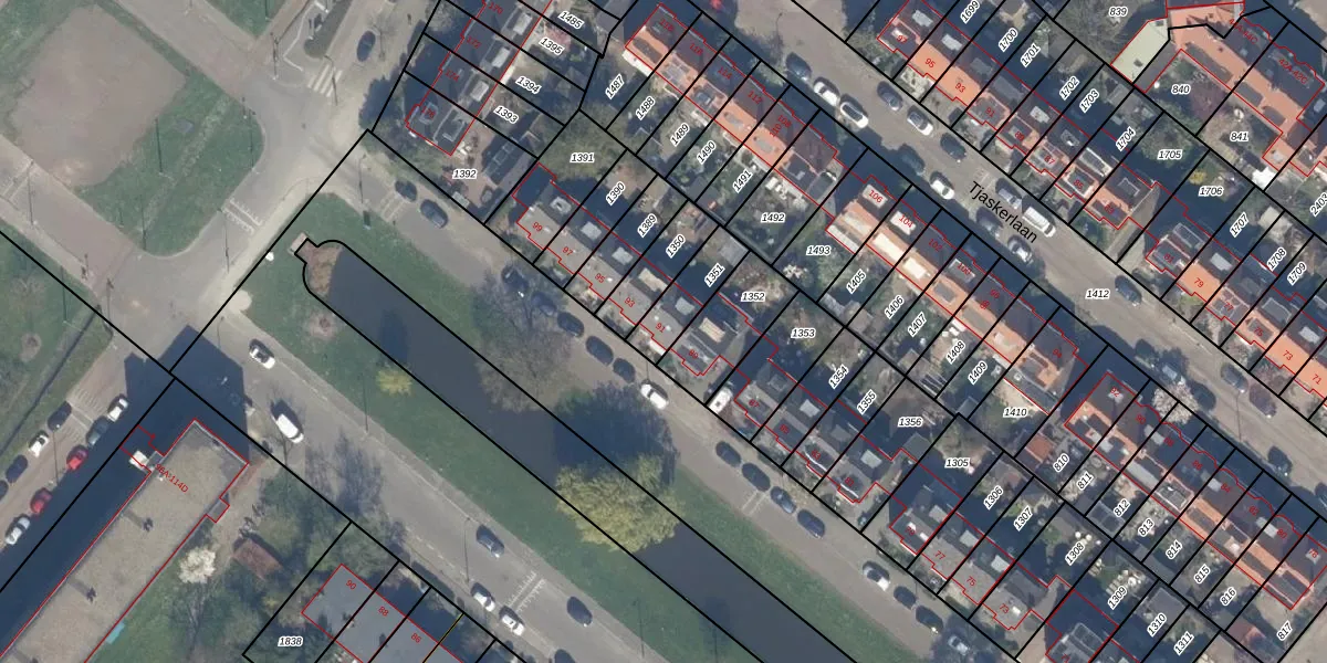 Gebruik de zoekbalk of klik op een perceel voor informatie over de adressen binnen dit perceel.