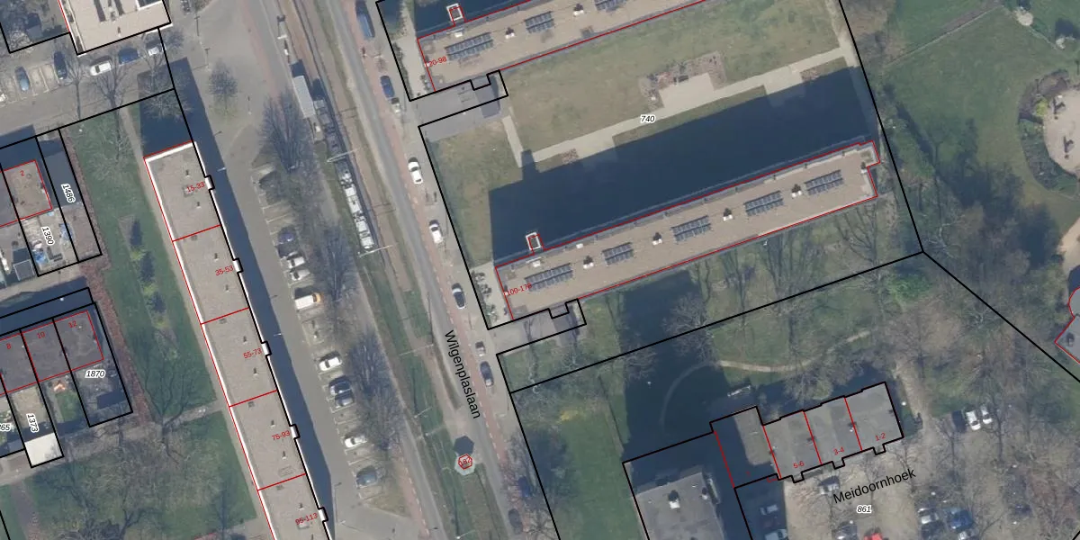 Wilgenplaslaan 116 is gelegen op kadastraal perceel SBK01D740. Deze kadastrale aanduiding is uniek en wordt gebruikt door het Kadaster om eigendomsrechten en andere zakelijke rechten vast te leggen. Het perceel maakt onderdeel uit van de kadastrale gemeente Schiebroek.