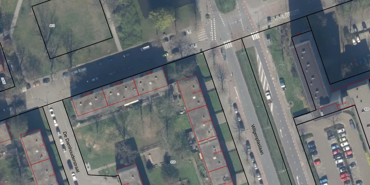 Wilgenplaslaan 217 is gelegen op kadastraal perceel SBK01D858. Deze kadastrale aanduiding is uniek en wordt gebruikt door het Kadaster om eigendomsrechten en andere zakelijke rechten vast te leggen. Het perceel maakt onderdeel uit van de kadastrale gemeente Schiebroek.