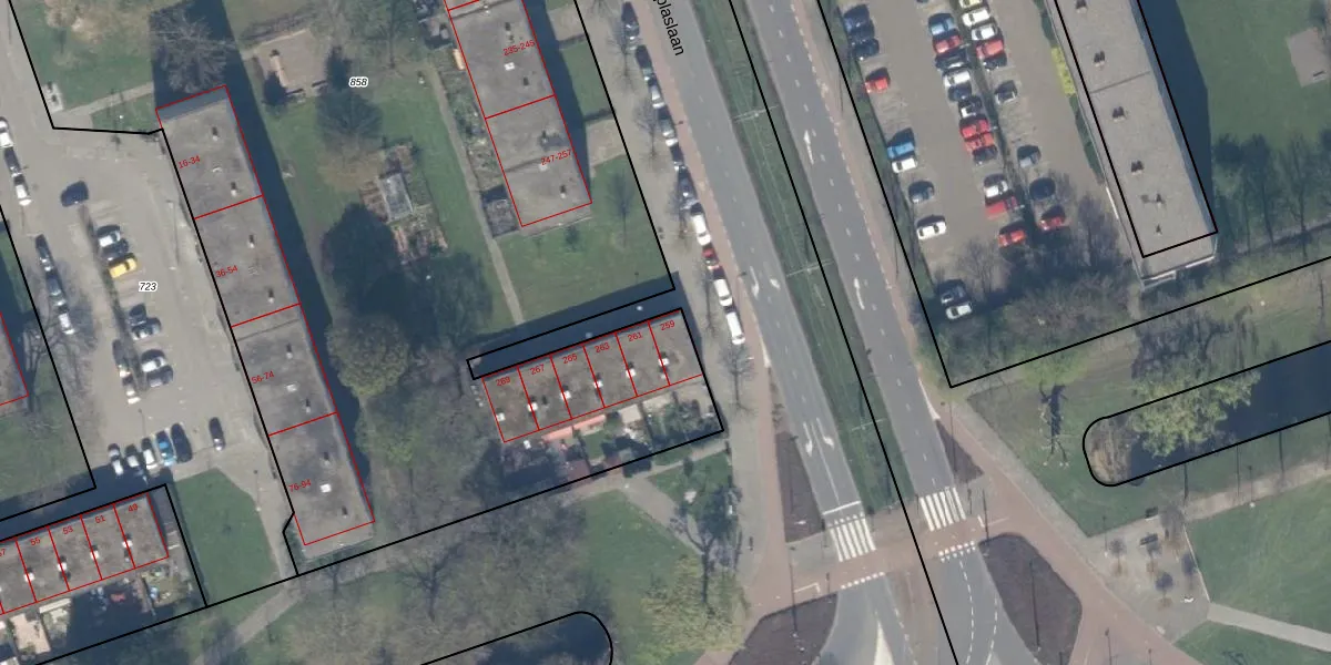 Het perceel waarop het adres ligt is SBK01-D-858. De afkorting 'SBK01' staat voor kadastrale gemeente Schiebroek. De oppervlakte van het perceel is 8337 m². Dat is groter dan gemiddeld in Schiebroek, waar de gemiddelde perceeloppervlakte op 1440,41 m² ligt. Het grootste perceel in de kadastrale gemeente is 36,7 ha. Het kleinste perceel heeft een oppervlakte van 0 m². Op het perceel zijn 94 adressen aanwezig. De huidige grenzen van het perceel zijn digitaal in de Basisregistratie Kadaster (BRK) geregistreerd op 03-07-2003.