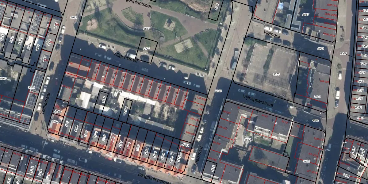 Wilgenstraat 2 is gelegen op kadastraal perceel RTD07W5658. Deze kadastrale aanduiding is uniek en wordt gebruikt door het Kadaster om eigendomsrechten en andere zakelijke rechten vast te leggen. Het perceel maakt onderdeel uit van de kadastrale gemeente Rotterdam.