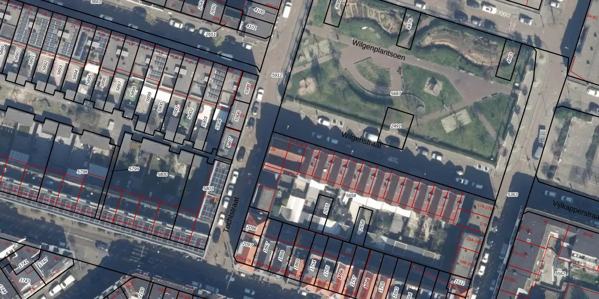 Wilgenstraat 24 is gelegen op kadastraal perceel RTD07W5658. Deze kadastrale aanduiding is uniek en wordt gebruikt door het Kadaster om eigendomsrechten en andere zakelijke rechten vast te leggen. Het perceel maakt onderdeel uit van de kadastrale gemeente Rotterdam.