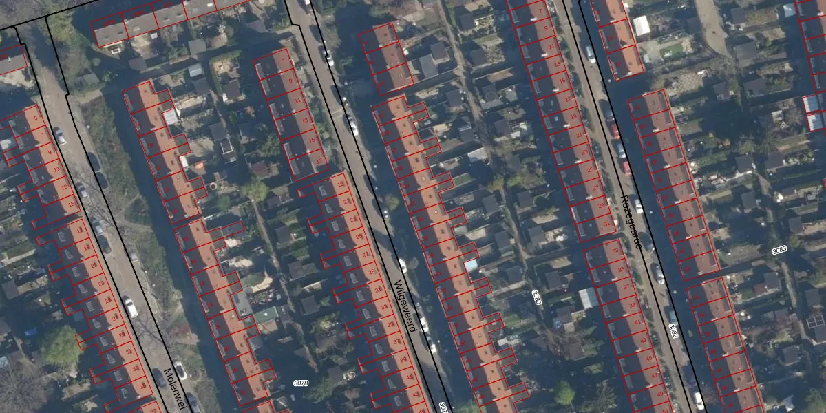 Het perceel waarop Wilgeweerd 22 staat heeft een oppervlakte van 1,2 ha. Dit is een zeer groot perceel. De perceeloppervlakte wordt geregistreerd door het Kadaster. Gedetailleerde informatie over de maten van dit perceel kunt u vinden in het rapport Kadastrale kaart met maatvoering van Wilgeweerd 22.