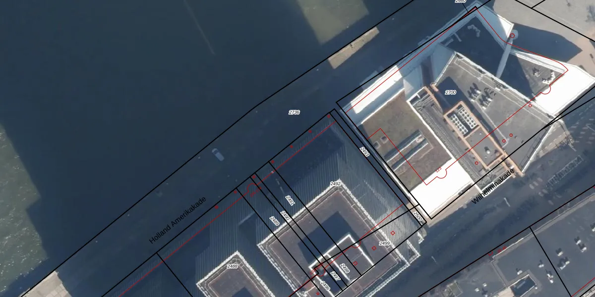 Het perceel waarop Wilhelminakade 135 staat heeft een oppervlakte van 1070 m². Dit is een zeer groot perceel. De perceeloppervlakte wordt geregistreerd door het Kadaster. Gedetailleerde informatie over de maten van dit perceel kunt u vinden in het rapport Kadastrale kaart met maatvoering van Wilhelminakade 135.